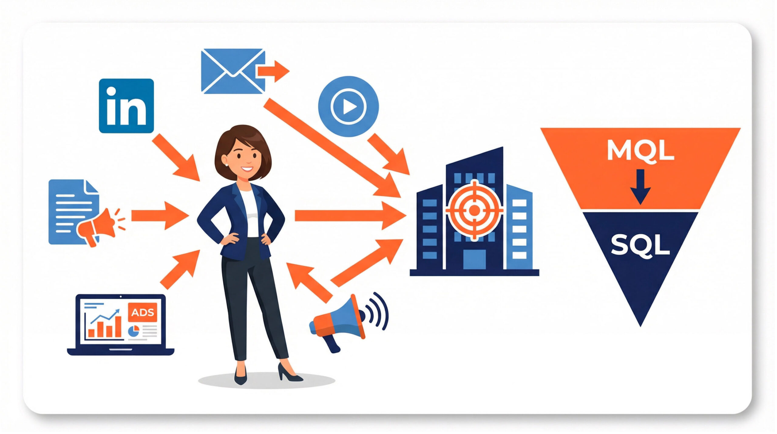 Statt viele Leads zu generieren, konzentriert sich dieser Ansatz auf wenige hochwertige Unternehmen mit hohem Umsatzpotenzial. Marketing liefert personalisierte Inhalte und Kampagnen, während der Vertrieb Beziehungen zu den Entscheidern im Buying Center aufbaut.