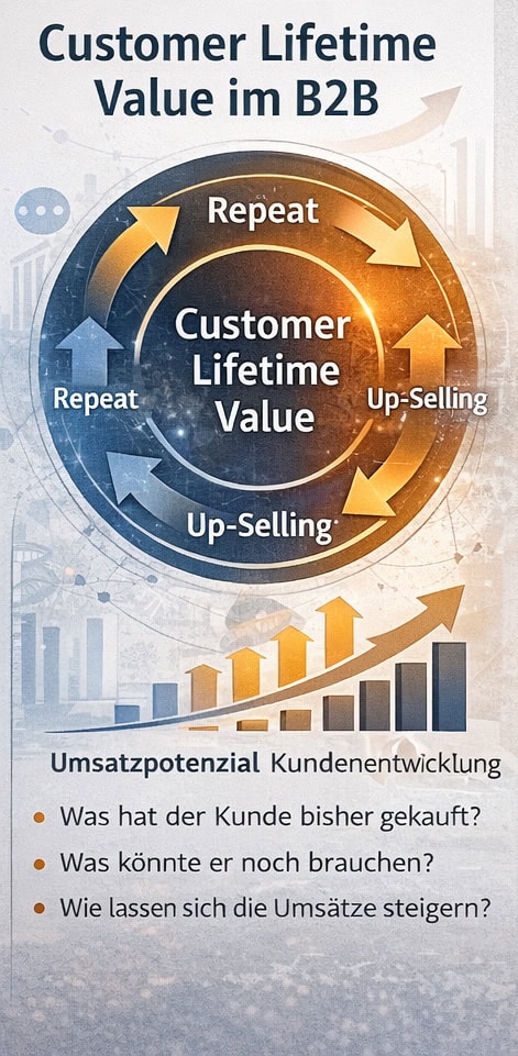 Im B2B-Geschäft entstehen große Teile des Umsatzes nicht beim ersten Auftrag, sondern in den Jahren danach – durch Folgekäufe, Erweiterungen, Zusatzlösungen und langfristige Partnerschaften.