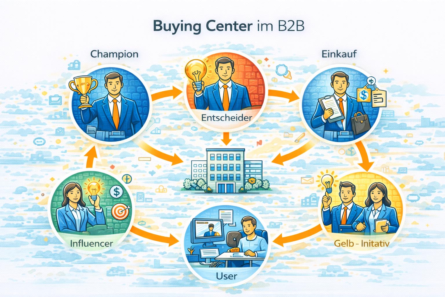 Im B2B werden Kaufentscheidungen selten von einer einzelnen Persona getroffen. Ein Buying Center aus mehreren Rollen beeinflusst den Entscheidungsprozess.
