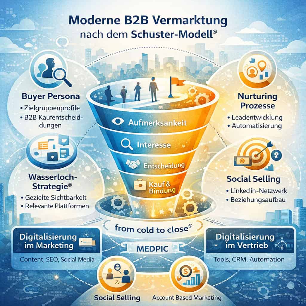 In Kombination mit dem Schuster-Modell® entsteht ein ganzheitlicher Ansatz für moderne B2B Vermarktung.