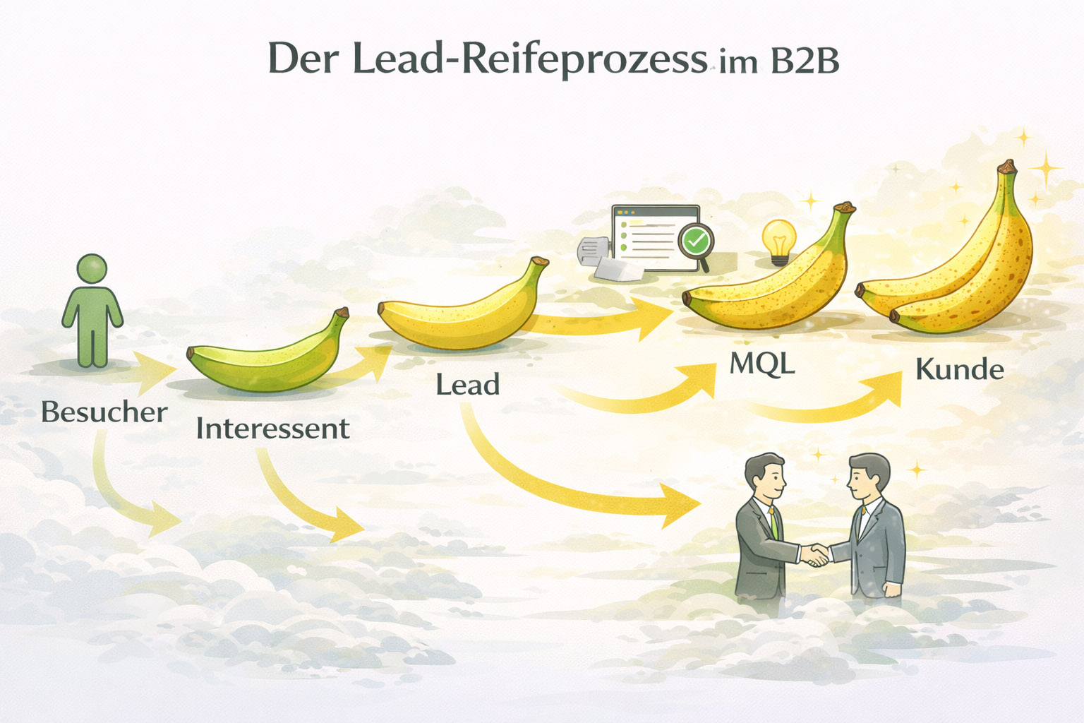 Der Grüne-Bananen-Effekt verdeutlicht ein zentrales Prinzip moderner B2B-Vermarktung: Nicht jeder Lead ist sofort bereit für den Vertrieb.